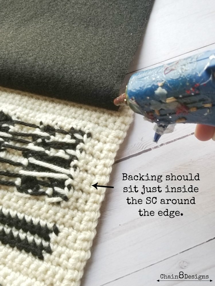 Attaching the felt backing: Run a bead of glue along the top edge of the felt and glue to the back of the hanging. Glue small sections on each side as you work to the bottom.