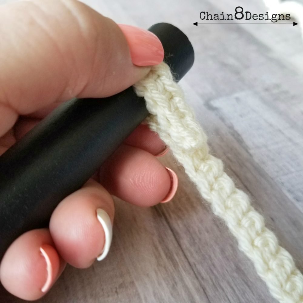 Row 1: SC into 2nd CH from hook; SC next 2; CH 1; turn