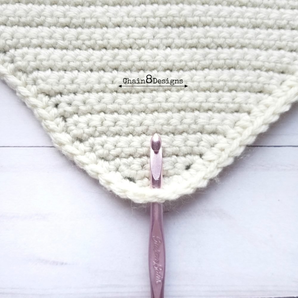 Finishing: SC around the edge of the three remaining sides (making sure to put 2 SC in each corner) ending with a SSCF to first SC of Row 20