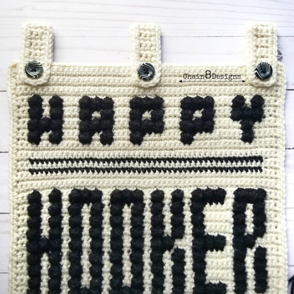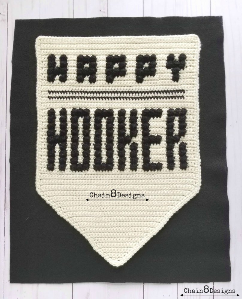 I’ve been redoing my office and I still had a blank wall to fill and knew I wanted something crochet to fill it. I thought of a few different ideas but nothing was really speaking to me until I remembered #happyhooker and knew that I wanted to make a wall hanging out of it. I know this won’t be everyone’s cup of tea, but if you like a good play on words this will be right up your alley.
